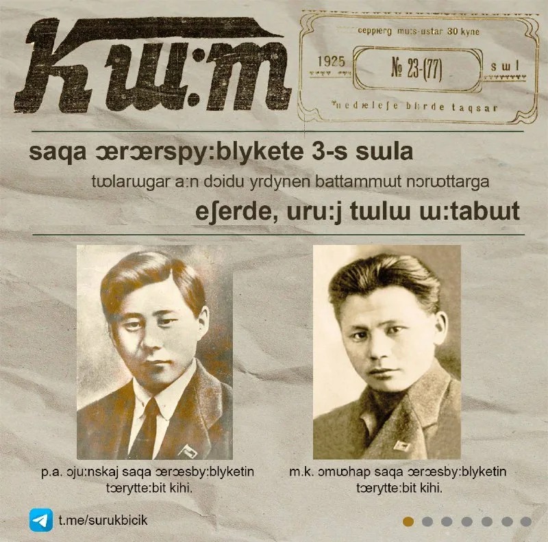 Саха судаарыстыбаннаһын төрүттэспит биллиилээх судаарыстыбанай диэйэтэл, саха суругунан уус-уран литэрэтиирэтин төрүттээччи, сахалартан бастакы учуонай — лингвист Платон Алексеевич Ойуунускай.
