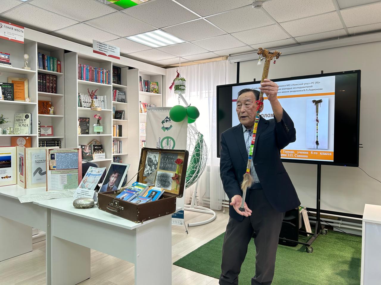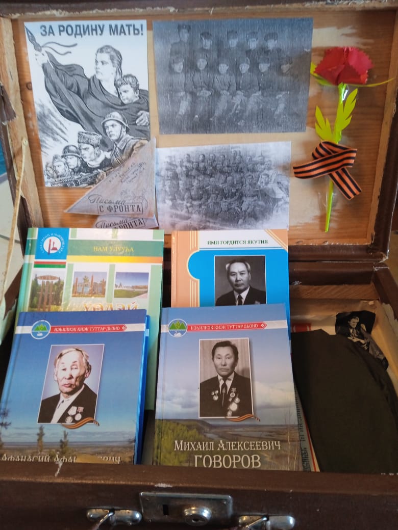 Олунньу 17 кунугэр Бастакы Хомустаахха Эйгэ сана көлүөнэ библиотекатыгар 🚩 «Книжный путь Великой Победы» улуустааҕы бырайыак чэрчитинэн «Улуу Кыайыыны уһансыбыт биир дойдулаахтарбыт» — диэн ааттаах Үөдэй нэһилиэгин Аҕа дойду сэриитин ветераннарын туhунан кинигэлэри, музейнай экспонаттары — саха тайах маһа, фляга ааспыт олох кэрэһиттэрэ, дириҥ ис хоһоонноох историяны билиһиннэрдэ «Ийэҕэ Албан аат” тумэл сал. Яковлев Алексей Дмитриевич.