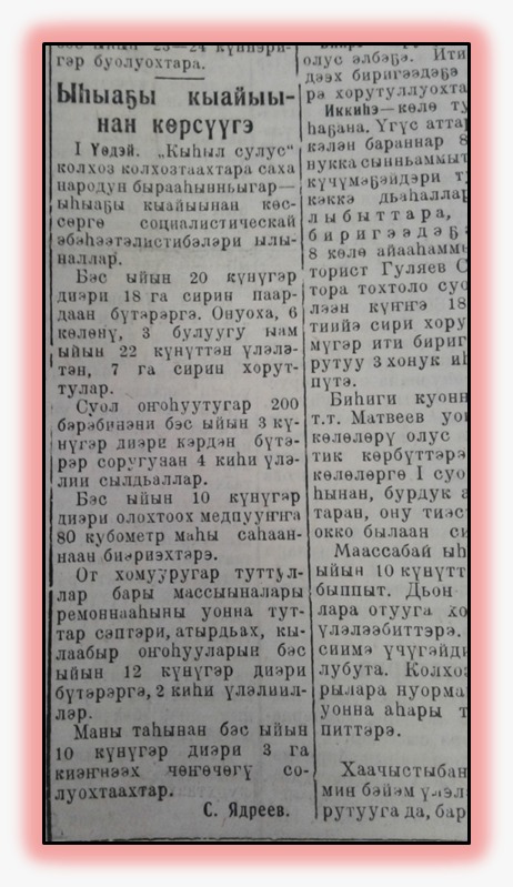 Сэрии кэминээҕи «Колхоз сирдьитэ» хаһыат кэпсиир.