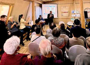Саҥа кинигэ сүрэхтэниитин үөрүүлээх чааһын ытыс дохсун тыаһынан аалай кыһыл лиэнтэтин сүөрдүлэр Алексей Дмитриевич Яковлев, Софья Дмитриевна Кобякова, Ньургуяна Витальевна Яковлева.