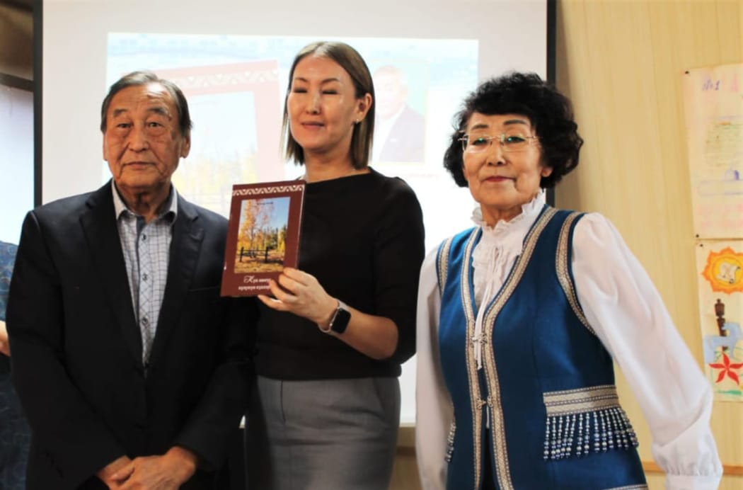 Саҥа кинигэ сүрэхтэниитин үөрүүлээх чааһын ытыс дохсун тыаһынан аалай кыһыл лиэнтэтин сүөрдүлэр Алексей Дмитриевич Яковлев, Софья Дмитриевна Кобякова, Ньургуяна Витальевна Яковлева.